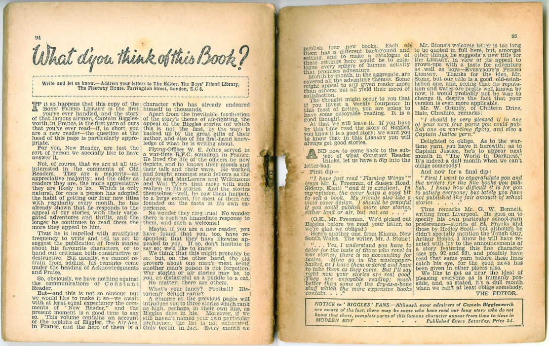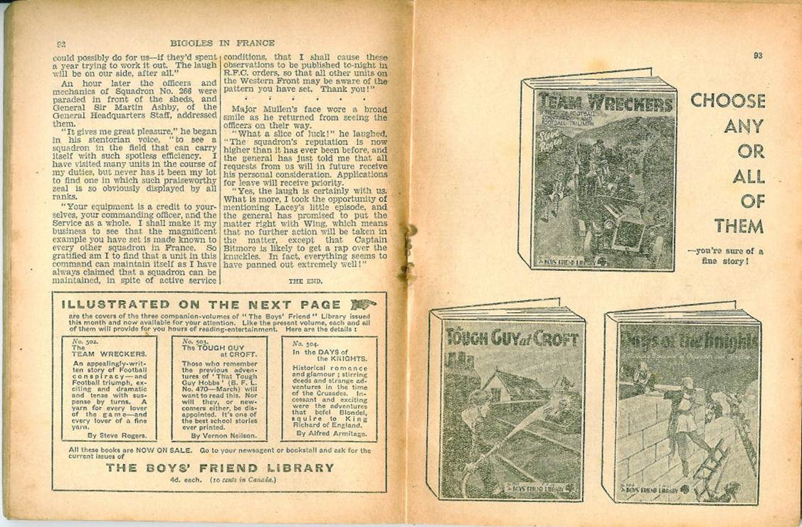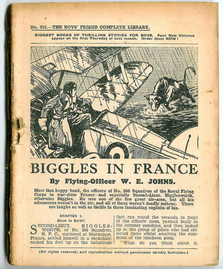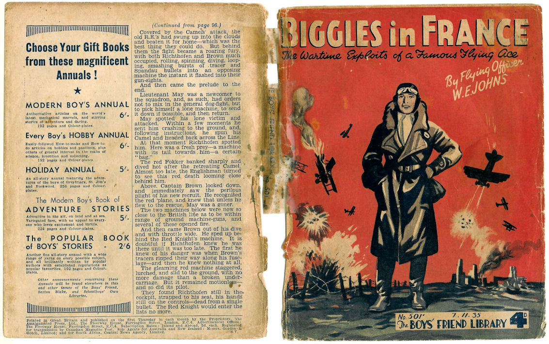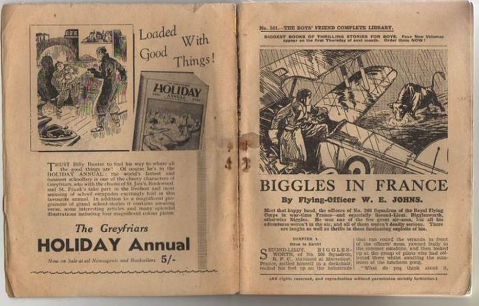 Note the “Notice to ‘Biggles’ fans” at the bottom of