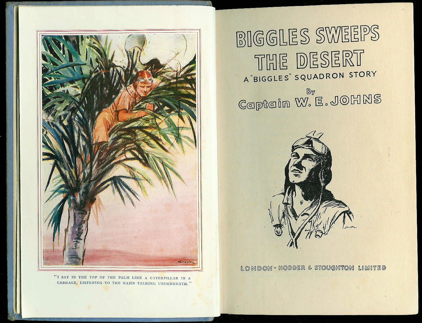Biggles. The picture on the dust cover of the book shows Biggles finding